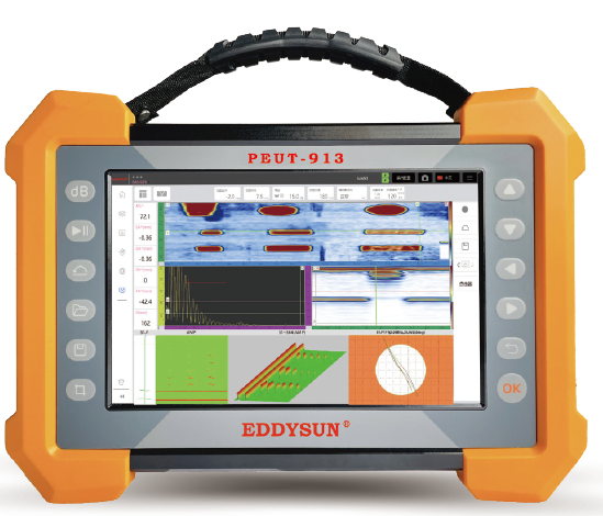 PEUT-913 Eddy Current Array/Phased Array Ultrasonic Integrated Tester breaks the limitations of traditional NDT by combining PAUT and ECA technologies in one revolutionary device. It delivers all-in-one detection of internal, surface, and near-surface flaws without coating removal, providing real-time 2D/3D C-scan imaging and automatic defect sizing. The system adapts to complex components like welds and turbine disks using electronic scanning and custom wedges. Its software correlates data from both techniques to reduce false calls, while full digital traceability meets aerospace and nuclear quality standards.